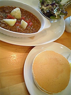 新高円寺 パンケーキデイズ。ドライカレーwithパンケーキ。ホントは「フレンチパンケーキ」が目当てだったのに、当日は阿波踊り祭り?のせいで、大幅削減された「阿波踊りメニュー」になってやんの。無いから、面白半分にドライカレーなんて頼んじまったよw味の感想は割愛。